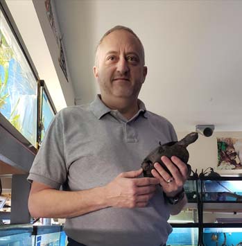 Kurt Edwards has a diverse collection of both aquatic species and tortoises. He was best known early in the hobby for producing Spotted turtles. In more recent years, he has developed a fondness for South American species and became the first breeder in the United States to successfully hatch and raise a Spiny-necked turtle (Acanthochelys spixii). In addition to aquatic species, Kurt is also interested in the Kinixys genus, and has hatched over 70 Home's Hingeback tortoises (Kinixys homeana) to date.